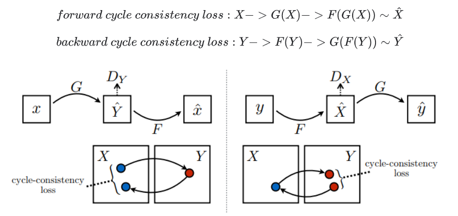 这里训练了两个生成器(G 和 F)以及两个判别器(X 和 Y)。