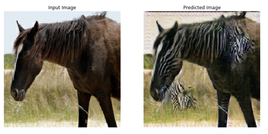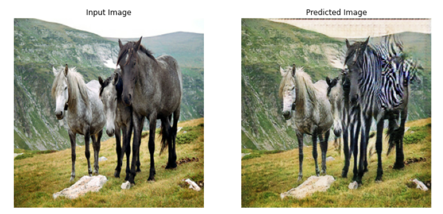 本文使用CycleGAN进行图像到图像转换,即:可以捕捉图像域特征,并找出如何将这些特征转换为另一个图像域。本文训练一个模型,以将普通马图片转换为斑马图片。
