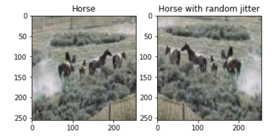 看一下将'Horse'马,随机翻转和随机抖动的效果