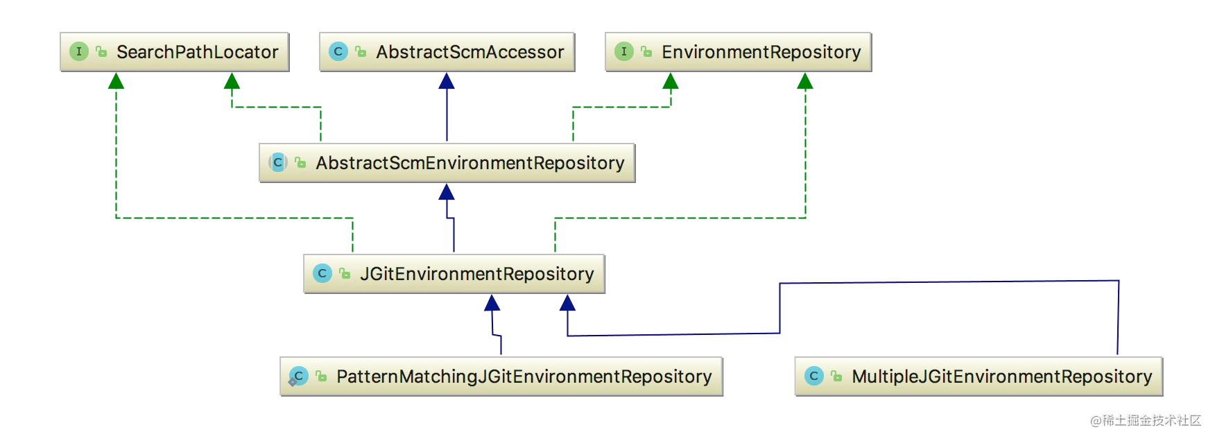 该抽象类基于SCM对配置信息进行管理的子类为JGitEnvironmentRepository。下面具体讲解JGit中实现的方法。