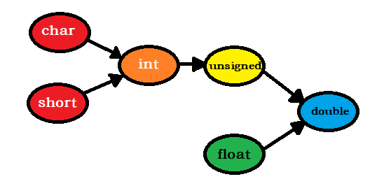 - 注意,所有的浮点运算都是以双精度进行的,即使运算中只有float类型,也要先转换为double类型,才能进行运算。