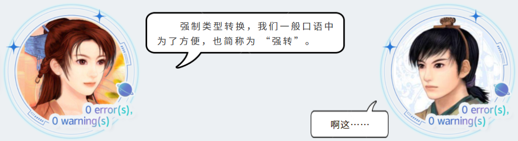 - 自动类型转换是编译器根据代码的上下文环境自行判断的,有时候并不是那么智能,不能满足所有的需求。所以有时候需要写代码的人,也就是程序员能够自己在代码中明确地提出要进行类型转换,这就是强制类型转换。