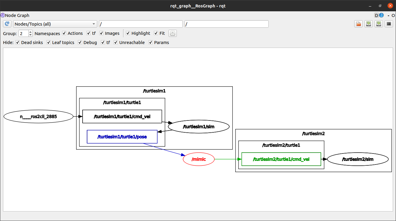 - ros2 launch turtlesim_mimic_launch.py