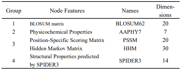 为了训练模型,作者使用了eSOL数据集,共有2737种蛋白质序列。从这些序列中,随机选择75%(2052个蛋白)作为训练集,其余685个蛋白用作独立测试。对于外部独立测试,作者选择了从酿酒酵母中收集的另一个蛋白质数据集。该数据集是通过包含108种具有相应3D结构的蛋白质而得出的。数据集考虑了如表1所示的四种节点特征。