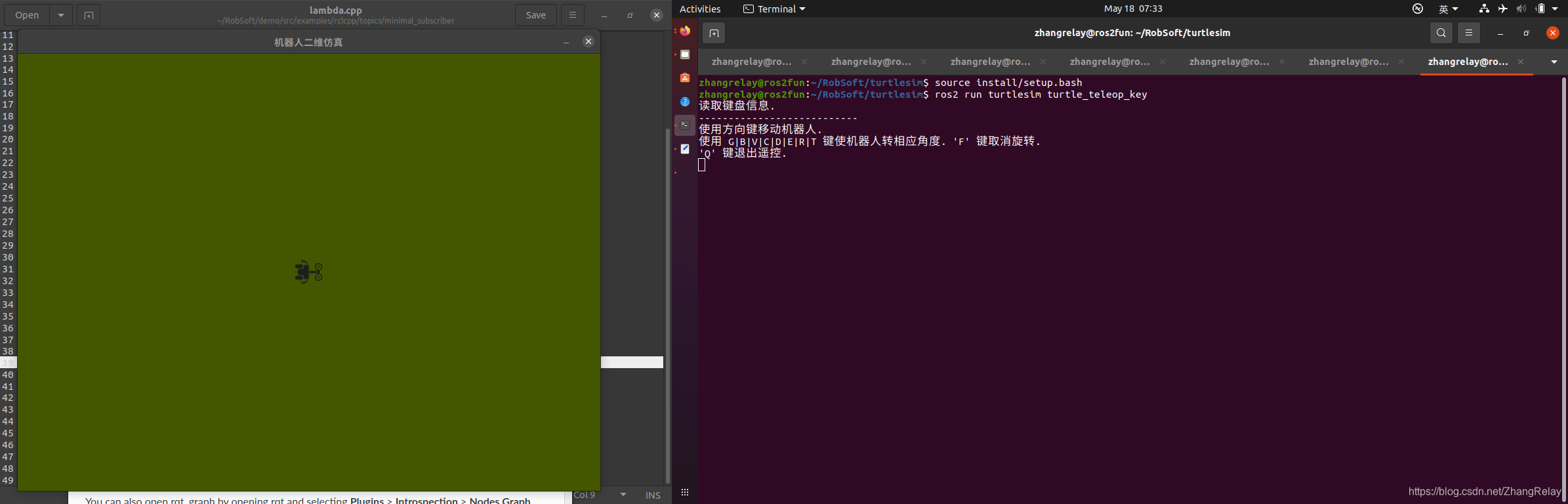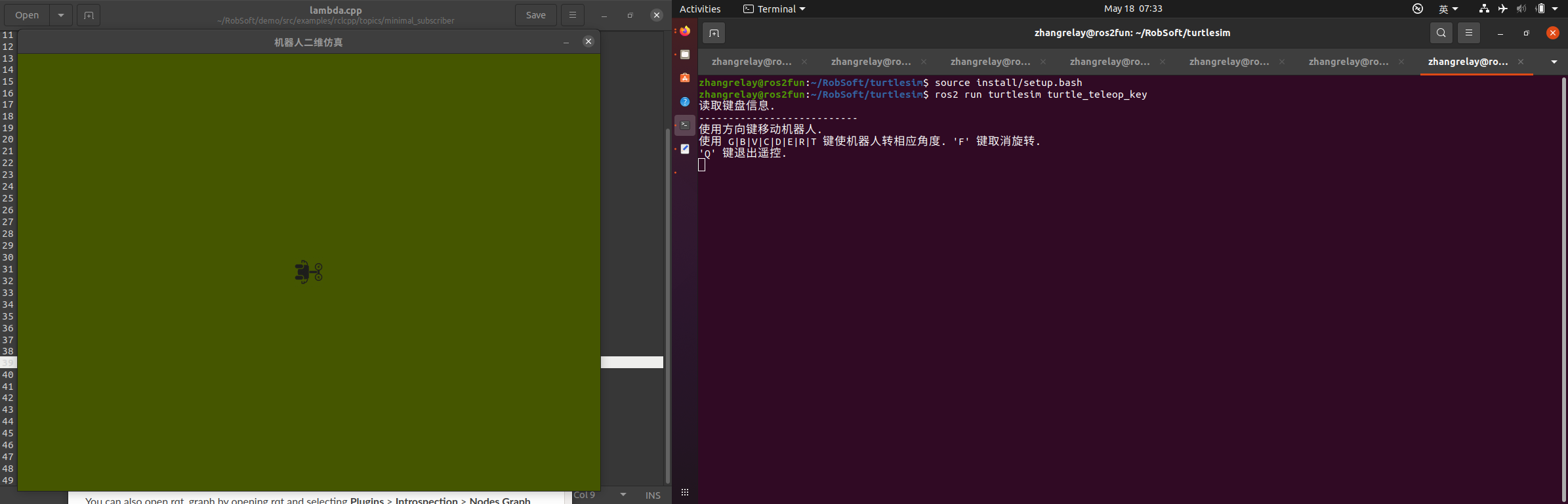 在机器人操作系统中,将复杂的系统拆解为许多模块(松耦合)。主题是一个ROS图中的虚拟元素,用于展示节点之间消息传输。
