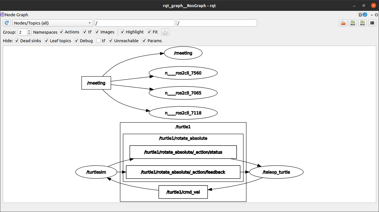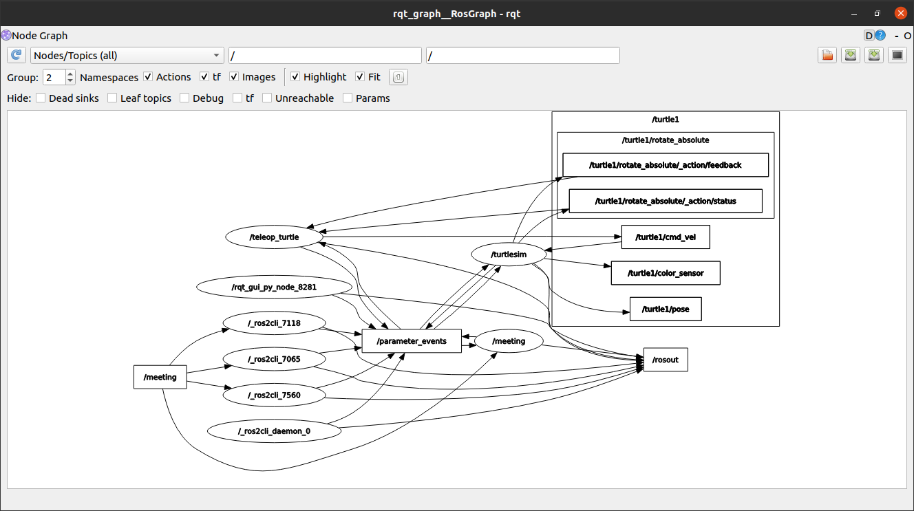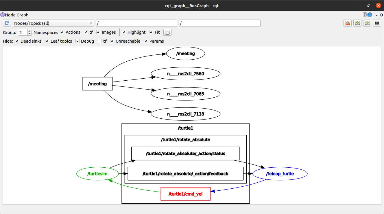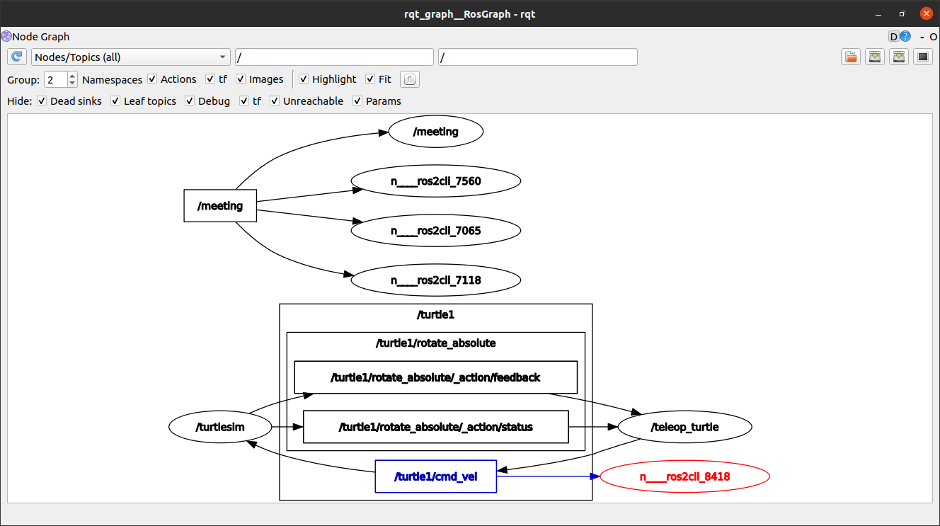 使用rqt_graph,可以清晰可视化节点和主题的动态,当然也包括它们的连接情况。