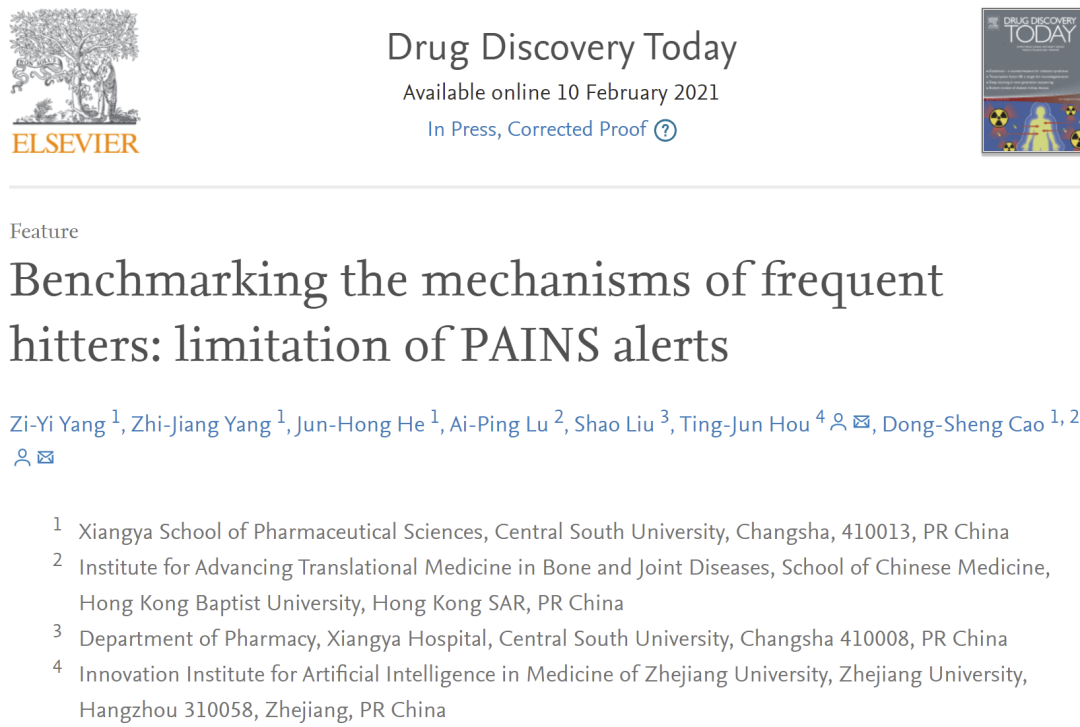 Yang Z Y , Yang Z J , He J H , et al. Benchmarking the mechanisms of frequent hitters: limitation of PAINS alerts[J]. Drug Discovery Today, 2021.