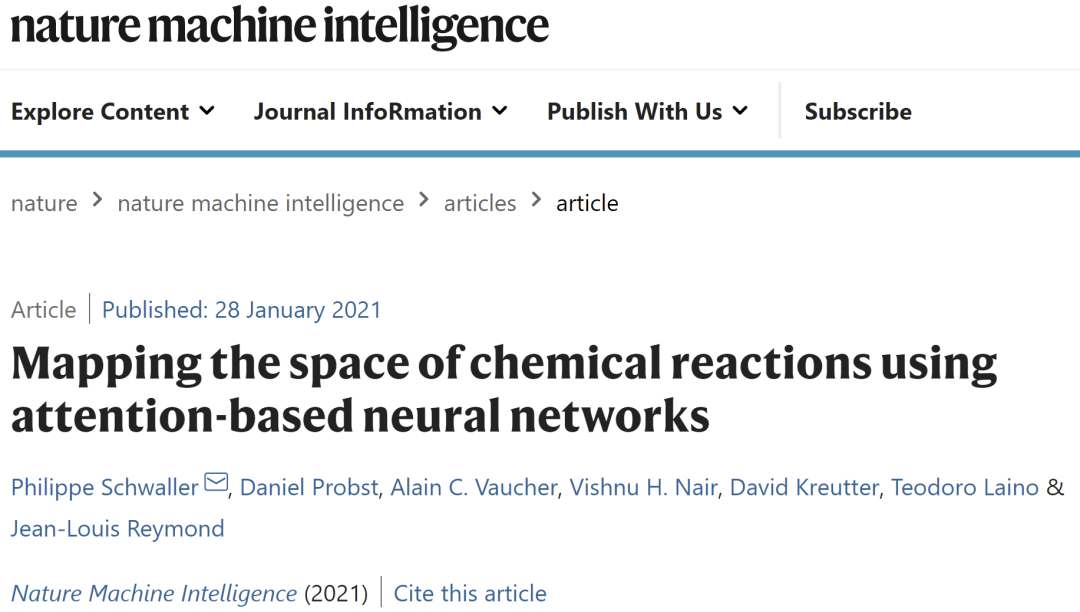 Schwaller, P., Probst, D., Vaucher, A.C. et al. Mapping the space of chemical reactions using attention-based neural networks. Nat Mach Intell (2021). https://doi.org/10.1038/s42256-020-00284-w