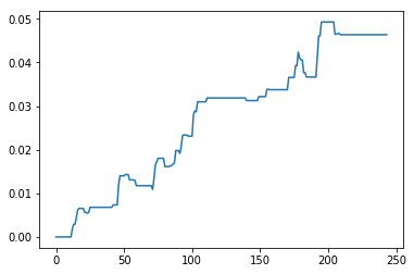 for i in range(1, len(cum_rtn)): cum_rtn[i] = cum_rtn[i - 1] + daily_rtn[len(daily_rtn) - 1 - i]