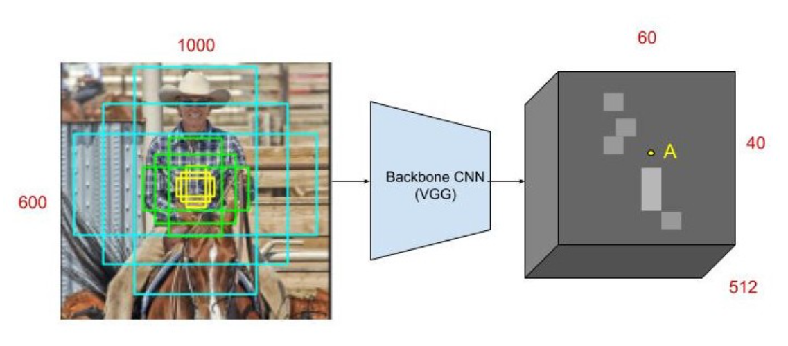H x W表示)通常比输入图像小得多,这取决于网络模型的步幅。在Faster R-CNN论文中使用的两个网络模型(VGG、ZF-Net),网络步长都是 16。这意味着网络输出特征中的两个连续像素对应于输入图像中相距 16 个像素的两个点。