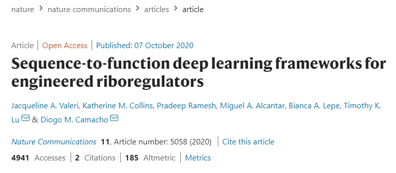 Valeri, J.A., Collins, K.M., Ramesh, P. et al. Sequence-to-function deep learning frameworks for engineered riboregulators. Nat Commun 11, 5058 (2020).