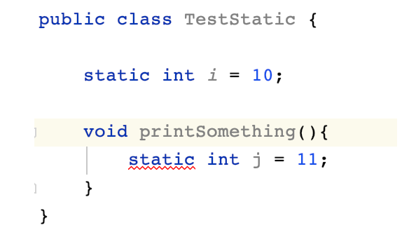 public class TestStatic { static int i = 10; // 定义了一个静态变量 i