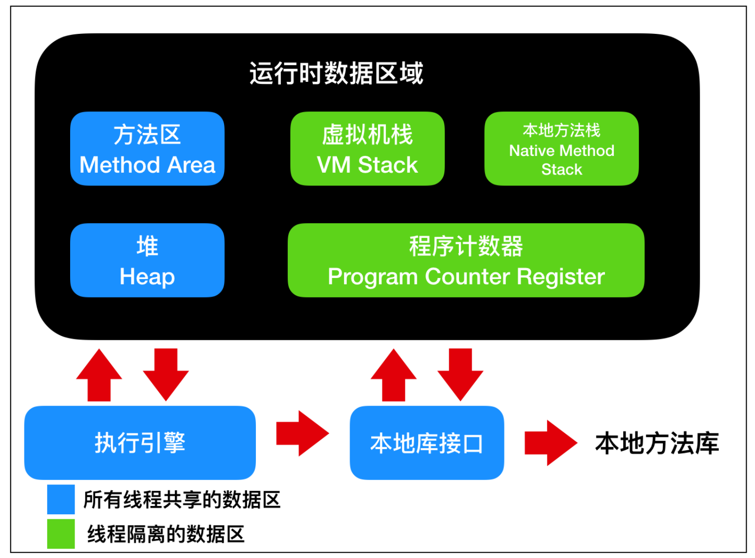 本地方法栈: 本地方法栈也是线程私有的数据区,本地方法栈存储的区域主要是 Java 中使用native关键字修饰的方法所存储的区域 -