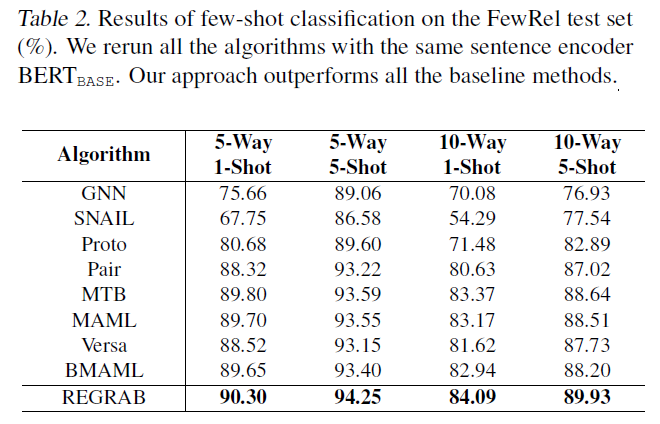 FewRel测试集、FewRel验证集和NYT-25测试集的主要结果见下面三张表格。