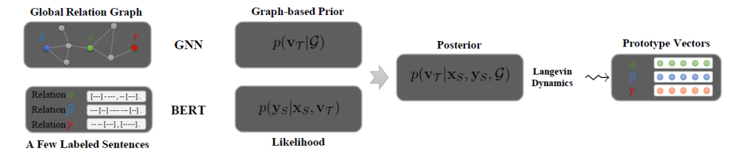 目前人们倾向于使用元学习的方法来提取关系。元学习的思想是用大量不同的任务来训练模型,每个任务都有几个例子来演示,这样学习的模型就可以快速推广到只有几个例子的新任务。但该方法训练数据的信息量仍然有限,其性能仍然不尽人意。为了更有效地推广到新的关系和任务,作者提出了利用全局图的方法建模不同的关系。全局关系图提供了不同关系之间关系的先验知识,允许我们在关系之间转移监督以及在没有扩充带标签的句子的情况下推广这些关系。此外,作者提出了一种新的贝叶斯元学习方法,通过学习基于标记句子的关系原型向量(即支持集)和全局关系图实现小样本关系抽取。