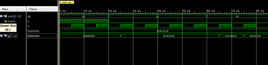 通用移位寄存器可以加载并行数据,将其内容向左移位(向高位移)、向右移位(向低位移)或保持原有状态。它可以实现并转串(首先加载并行输入,然后移位)或串转并(首先移位,然后并行输出)。实现这种操作需要两位控制信号ctrl,如下: