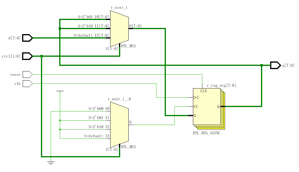 【摘要】 通用移位寄存器可以加载并行数据,将其内容向左移位(向高位移)、向右移位(向低位移)或保持原有状态。它可以实现并转串(首先加载并行输入,然后移位)或串转并(首先移位,然后并行输出)。实现这种操作需要两位控制信号ctrl,如下: