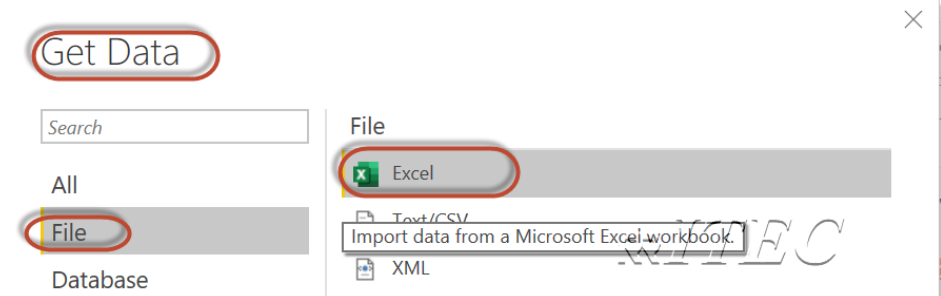 - .打开** Power BI Desktop >单击获取数据**>单击文件>单击Excel