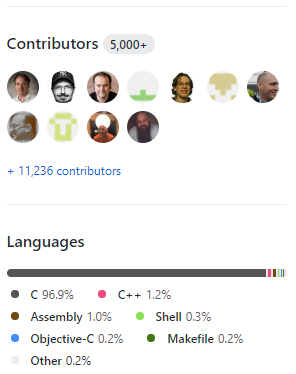 系统内核还是C为主,工具以C++和Python等为主。