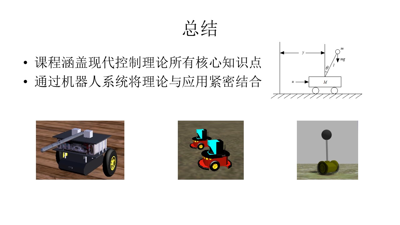 课程特点:不仅涵盖所有现代控制理论知识点,还将通过机器人系统将其应用到两轮差动移动机器人,倒立摆小车和自平衡机器人中。
