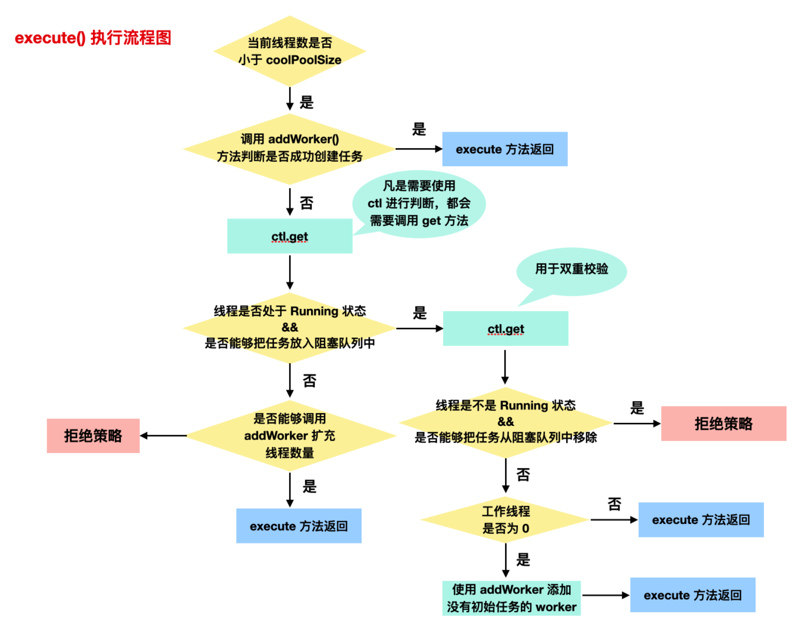 我们前面的流程主要分析了线程池的 execute 方法的执行过程,这个执行过程相当于是任务提交过程,而我们下面要说的是从队列中获取任务并运行的这个工作流程。
