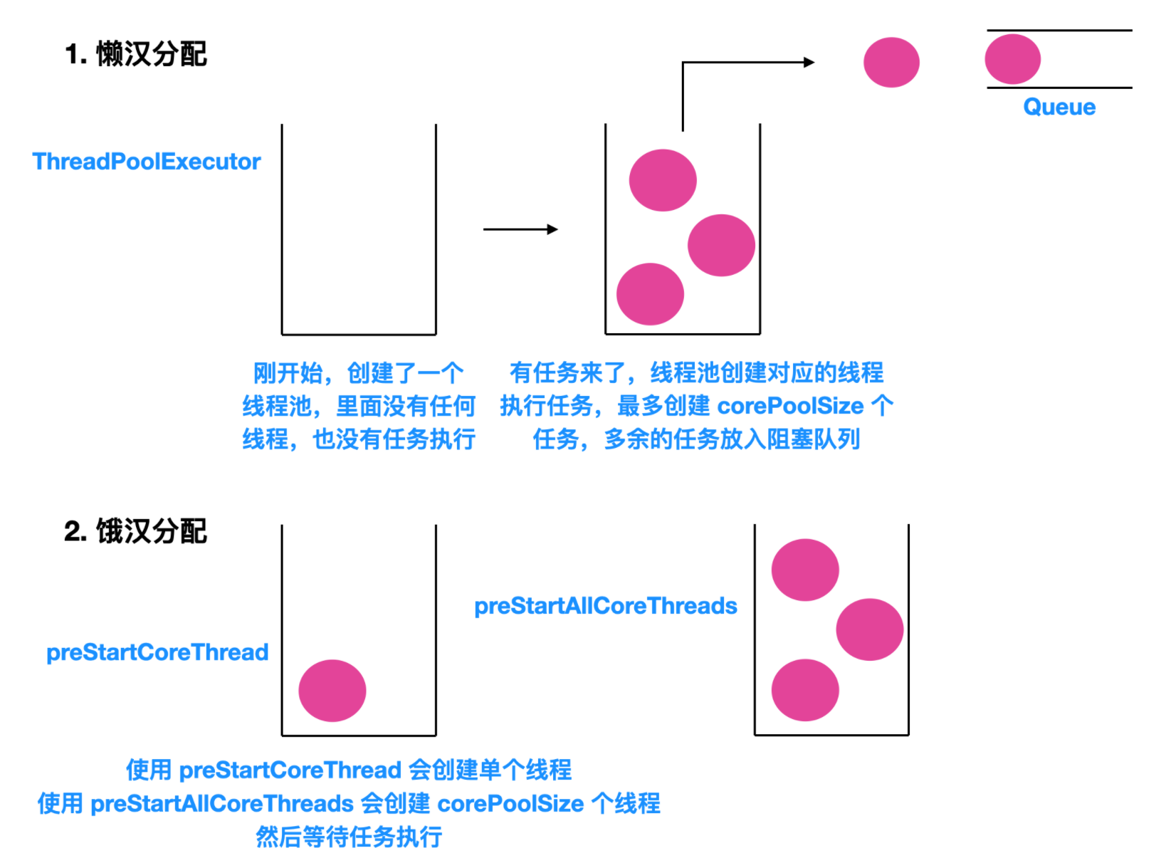 // 故如果调用线程池 shutdown(),直到workQueue为空前,线程池都会维持 corePoolSize 个线程,