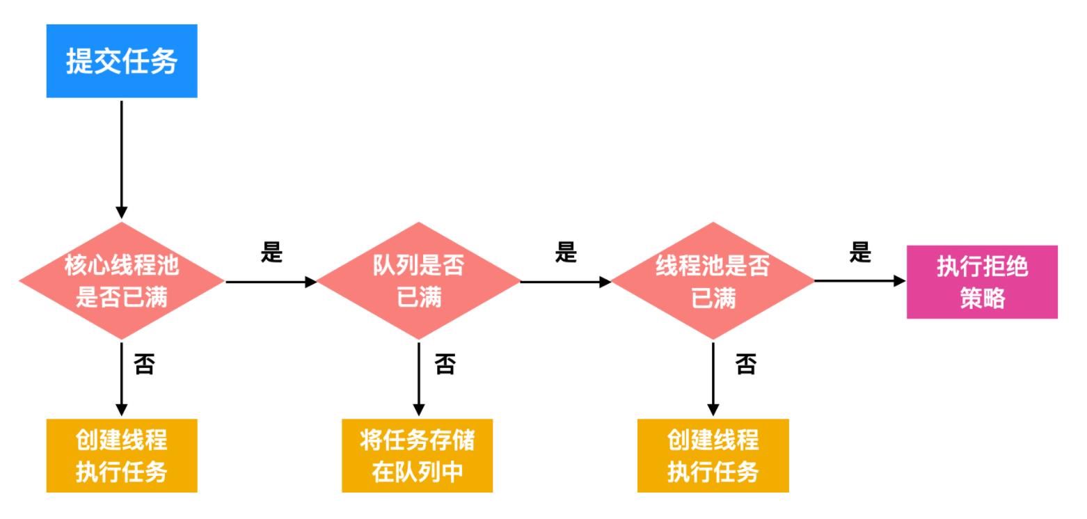 - 如果当前线程的线程数等于 corePoolSize,会将任务直接加入到