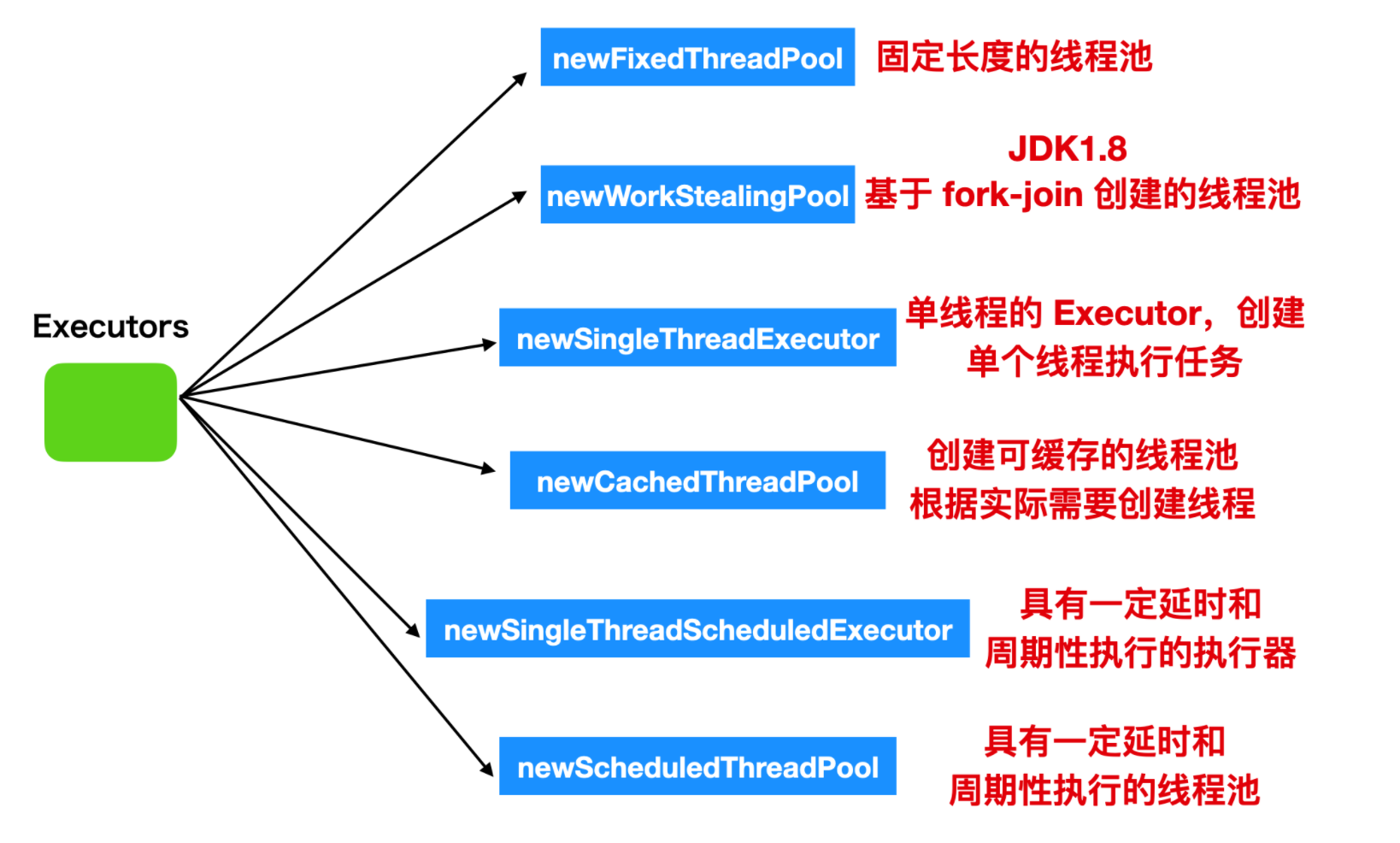 Executor executor = Executors.xxx // xxx 其实就是 Executor 的实现类,我们后面会说