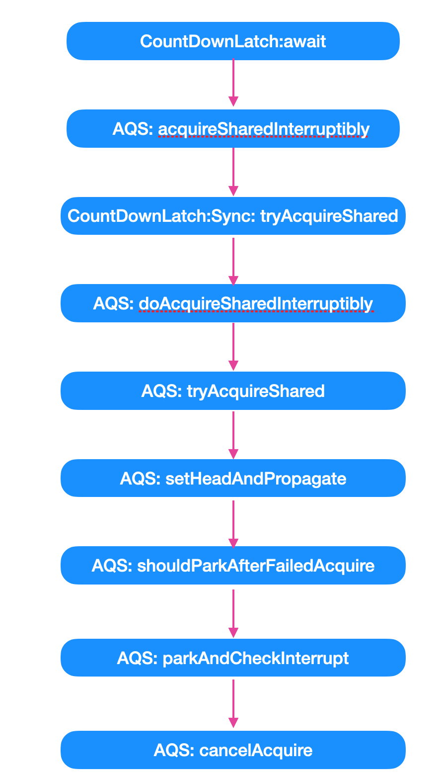 所以,对 CountDownLatch 的 await 调用大致会有如下的调用过程。