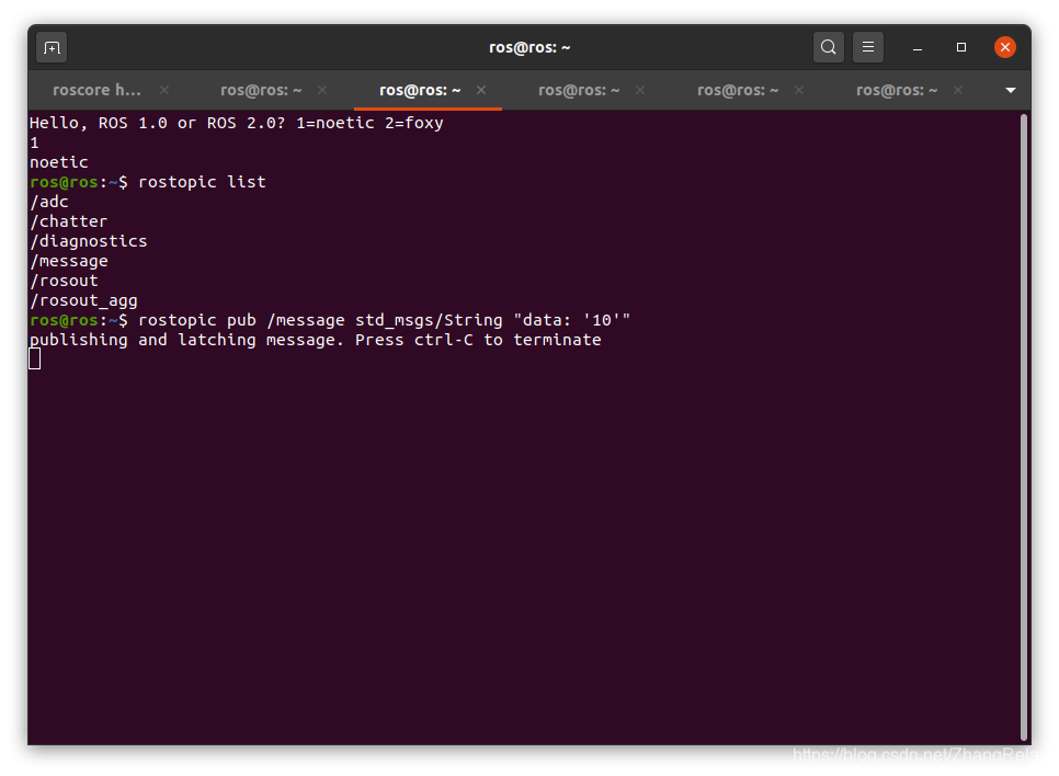 简单解释一下,发布节点chatter,adc,订阅节点message。