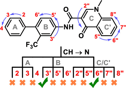 生物医药研究中,将优化命中或先导化合物转化为高质量化学探针或候选药物所需的设计周期的数量和持续时间减到最少是一个持续的挑战。由于对分子和物理化学性质以及分子内和分子间相互作用的显着影响,对命中或先导化合物进行的小结构修饰可能会对药理学特性产生有意义的影响。快速有效地制备一系列位置类似物的药理学概况,是将次甲基与含芳族或杂芳族环的命中或先导化合物中的杂原子或其他取代基进行系统交换,是使设计周期最小化的一种方法(例如,交换芳族或杂芳族化合物)具有N个原子的CH基或CF,CMe或COH基)。