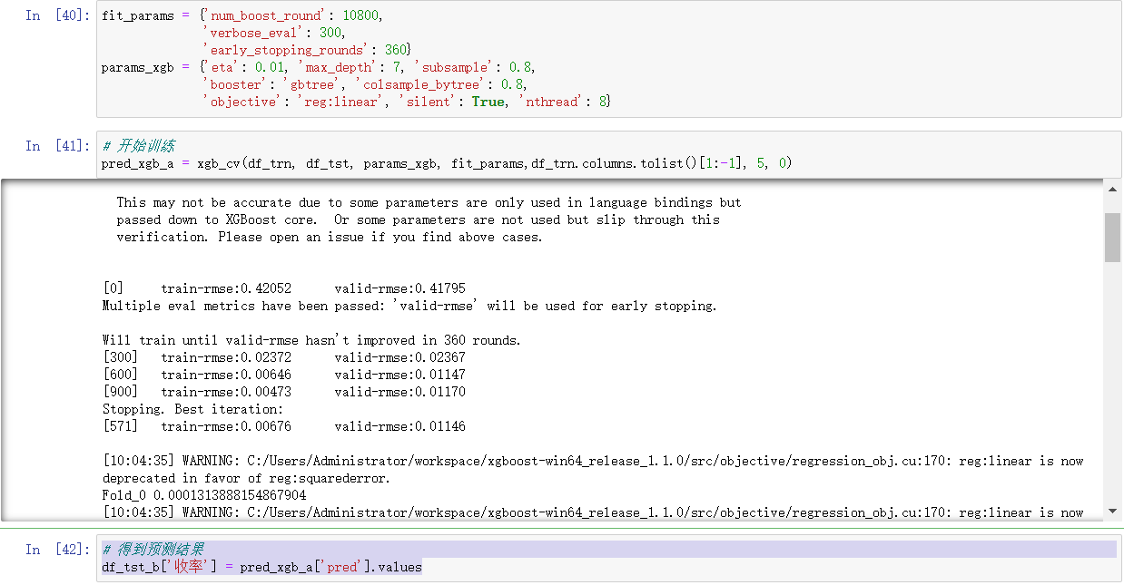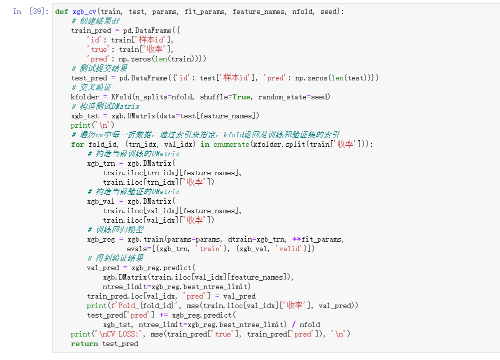 应用的XGBoost核心代码如下,特征工程部分不再分析。