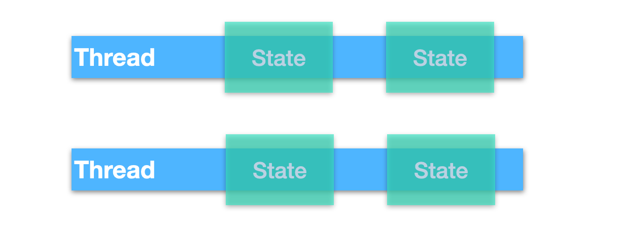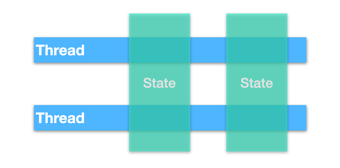 并发模型的一个重要的方面是,线程是否应该共享状态,是具有共享状态还是独立状态。共享状态也就意味着在不同线程之间共享某些状态