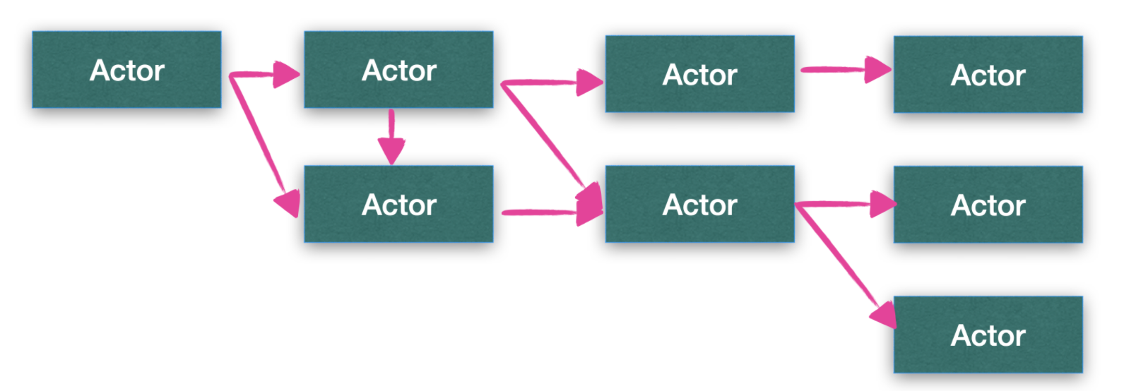 在 Actor 模型中,每一个 Actor 其实就是一个 Worker, 每一个 Actor 都能够处理任务。