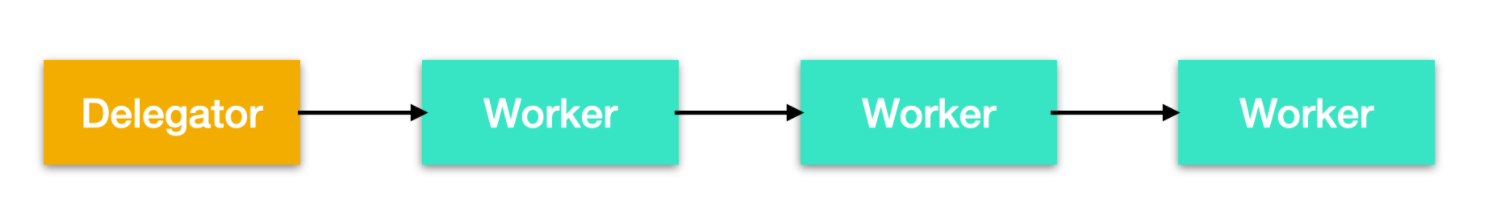 这种组织架构就像是工厂中装配线中的 worker,每个 worker 只完成全部工作的一部分,完成一部分后,worker 会将工作转发给下一个 worker。