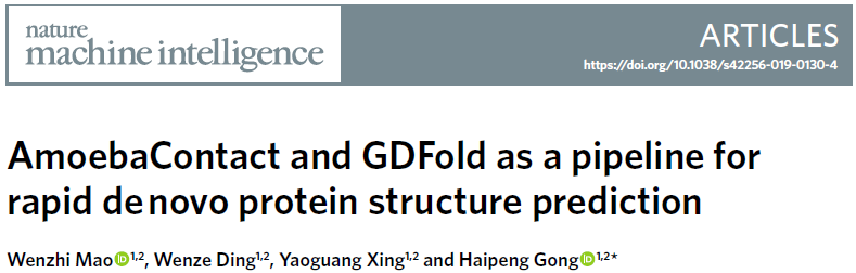 Mao, W., Ding, W., Xing, Y. et al. AmoebaContact and GDFold as a pipeline for rapid de novo protein structure prediction. Nat Mach Intell 2, 25–33 (2020) doi:10.1038/s42256-019-0130-4