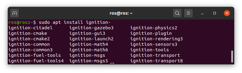 ros_ign包含提供ROS和Ignition之间集成的软件包 :