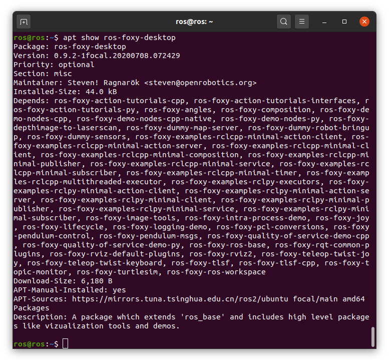 使用如下命令查看ros-foxy-desktop详细信息如下: