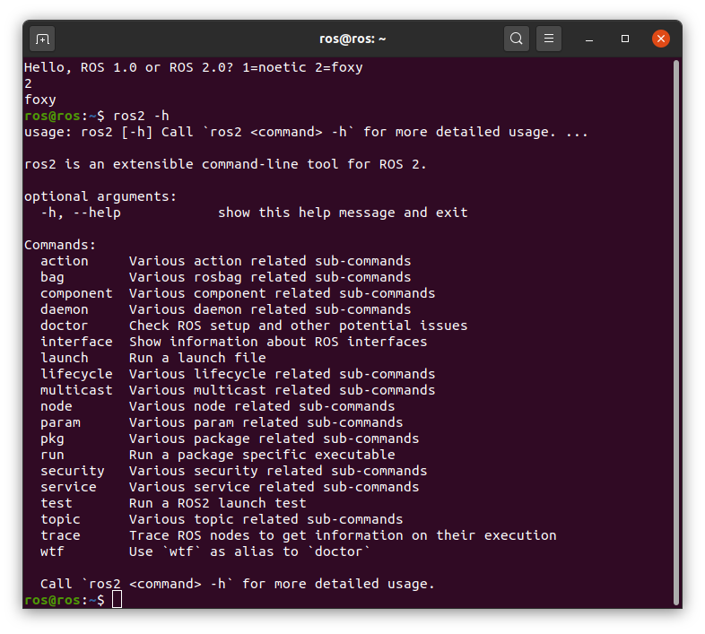 - ROS2的版本为:Foxy,LTS版本支持时间2020-2023。