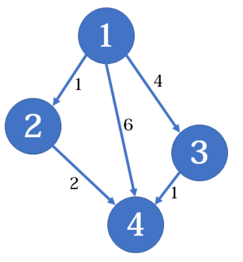 比如上图的:图中点1到点4的最短路径长度应为3(从1到2到4)。