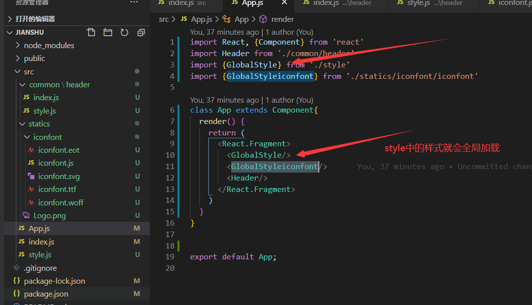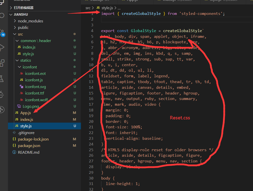 注意:这里styled-components更新,没有injectGlobal 的Api。用 createGlobalStyle 替换掉,export导出,然后在App.js导入。