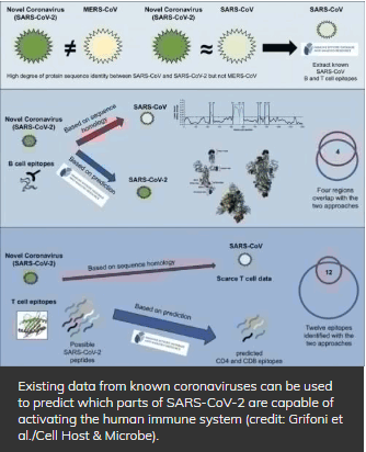 美国La Jolla免疫研究所的一个研究小组与J. Craig Venter研究所的研究人员合作,使用SARS-CoV的数据来预测SARS-CoV-2的哪些部分能够激活人类免疫系统。
