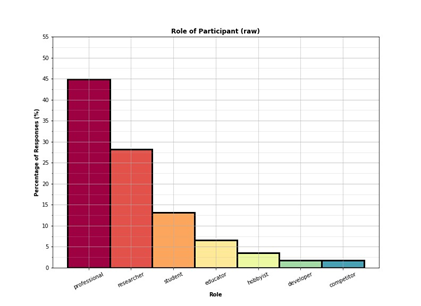 这些数据很有意思,也很有用,但我还是要谨慎对待。整体调查偏向于ROS话语的个人。幸好这里的分析是相当自动化的,所以我们可以继续收集数据并从中学习。我们很希望有更多的学生和教育工作者参加调查,这样我们就可以扩大样本量。