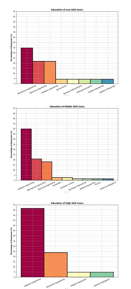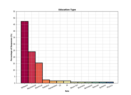 接下来,我们想了解的是使用ROS的人的教育背景。具体来说,我们想了解专业的软件工程师/计算机科学毕业生与其他学科如机械工程和电气工程之间的平衡。
