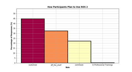 这似乎得到了数据的支持,大多数参与者都希望进行一定程度的定制。值得注意的是,在这个情节中,只有22%的受访者希望将代码贡献回ROS 2。