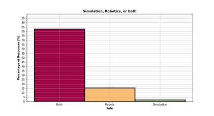 平衡来看,ROS社区正在为他们的物理机器人建立模拟,那些只做纯ROS或纯Gazebo模拟的人占了少数,或者说是受访者。