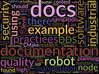 我很想听听社区的看法。这些数据是否与你的个人经历相吻合?在ROS 2文档方面,你希望看到什么?