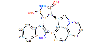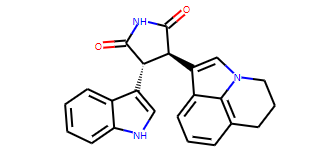 mol = Chem.MolFromSmiles( "C1CC2=C3C(=CC=C2)C(=CN3C1)[C@H]4[C@@H](C(=O)NC4=O)C5=CNC6=CC=CC=C65" )