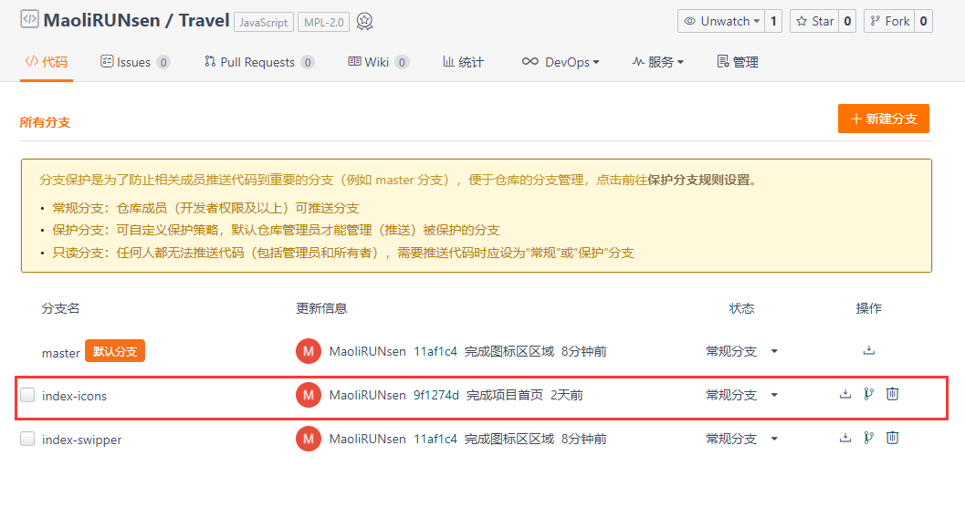 然后通过git pull和git checkout index-icons进行图标区域功能的开发。