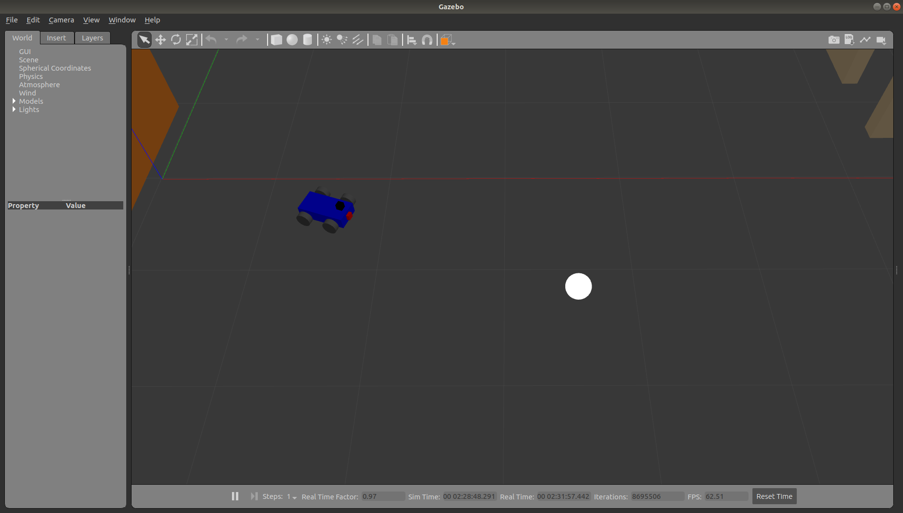 上一篇,已经在Gazebo 9中放入了一个支持ROS 2的仿真机器人,具体参考: